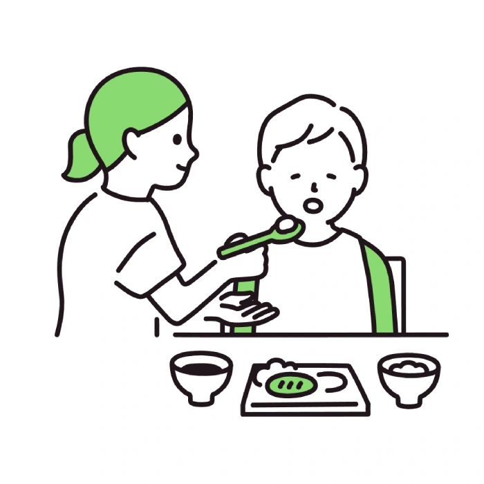 食事の準備や見守り、食事を口に運ぶお手伝いなど、安全に食事ができるようにサポートします。